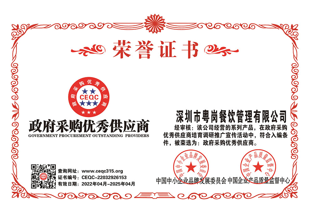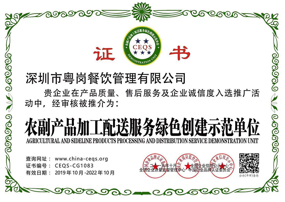 深圳市粵崗餐飲管理有限公司,是一家集蔬菜種植和農(nóng)副產(chǎn)品配送為一體的專業(yè)型餐飲公司,主要為學校、工廠企事業(yè)機關單位提供蔬菜和農(nóng)副產(chǎn)品配送服務。公司自成立以來始終以質(zhì)優(yōu)價廉、服務至上為原則,嚴格按照ISO:9001國際標準體系進行管理。同時建立了行業(yè)領先的配送中心、大型冷庫和保鮮庫、檢測中心以及專業(yè)化的配送團隊,能長期安全、穩(wěn)定、準時的配送貨物。我們所有蔬菜均經(jīng)過初步加工、無黃葉,無泥沙等雜質(zhì),利用率達97%以上...保障向用戶提供的各類食材的衛(wèi)生和質(zhì)量。公司為了適應不同客戶的需求,配有專業(yè)人員和配送車輛,實行“一對一”的服務體制,一心一意的為客戶服務,秉承粵崗誠實守信、服務第一、客戶至上的服務標準,真正讓客戶花最少的錢吃最好的菜。粵崗多年來何以欣欣向榮,因為我們知道只有勇于擔當責任,才能承擔更大的責任,就是因為 粵崗員工貫徹公司態(tài)度決定一切、細節(jié)決定成敗的真理,從質(zhì)量抓起,從服務做起,才創(chuàng)造了如今的規(guī)模化供應、統(tǒng)一性配送、專業(yè)化服務的粵崗。